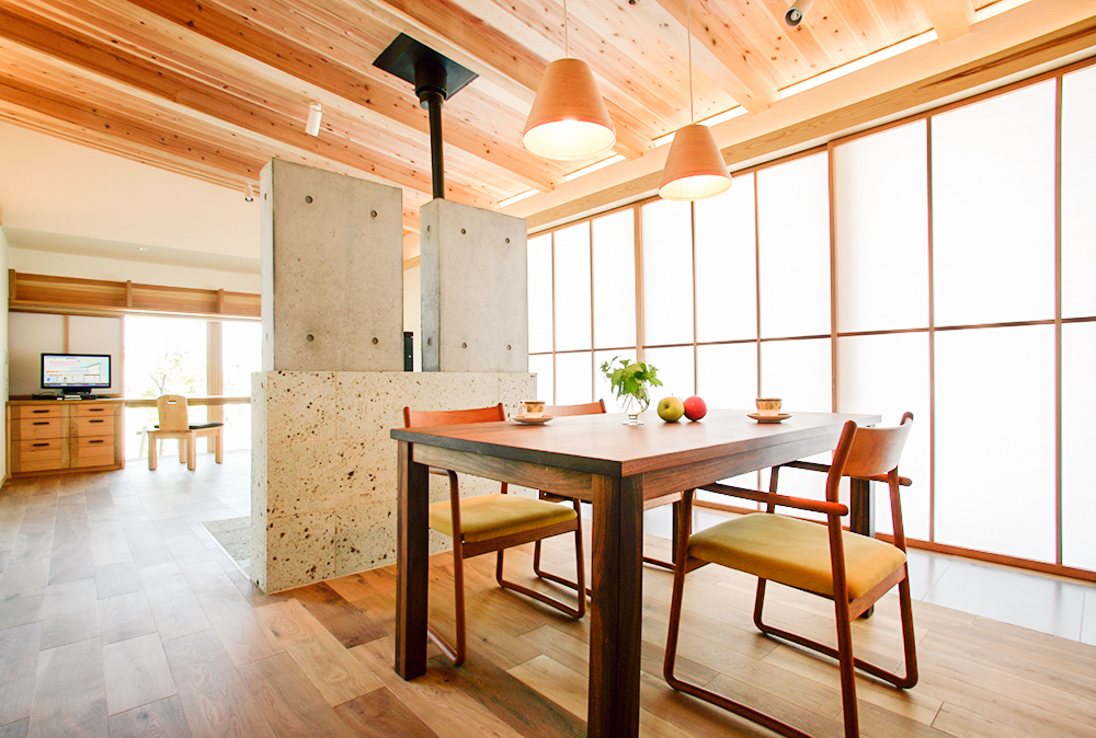 静岡県は日本有数の木材の集積地であり、同時に産地でもあります。このエコハウスでは地元産の天竜杉をふんだんに使っています。