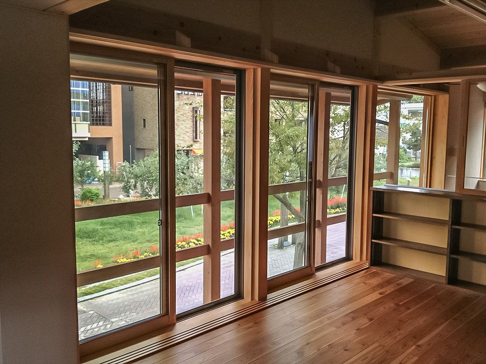 エコハウスが出来て数年経過し、途中では3.11も経験し家のあり方そのものの価値観もより人間目線に変化してきました。リンゴ並木のエコハウスに訪れる人々もハード的な学習目的から、様々な企画体験(エコカフェ)で過ごす事が多くなり、より生き生きした住宅として運営されています。家本体よりそこでされる生活が鮮明になっていく事そのものが、エコハウスの最終到達点だと思っています。