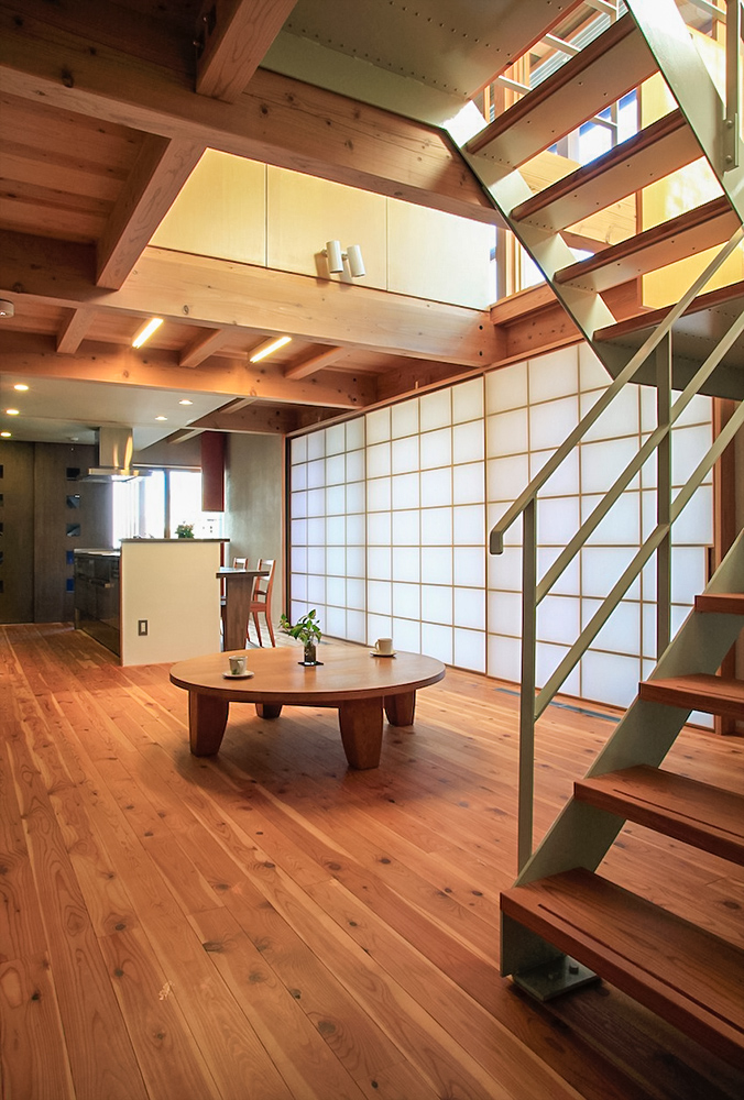 暑くても寒くてもスイッチ一つの“ホテル”では無く、住人が手間を掛け、工夫することで、より過ごしやすい環境を手に入れる。冬-10℃、夏38℃に達する厳しい気候にあって、基本的な建物の性能を高める事で、環境に対しては微々たる人間力でも対処出来るエコハウスであってほしいと願いました。最初から田舎くさく、ライフスタイルの変化や流行に流されない、飯田らしい価値観がいつまでも続く木造デザインを基本としています。
