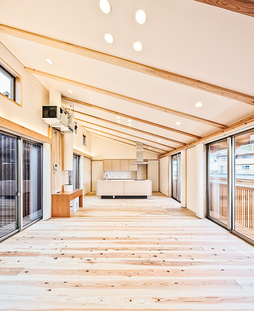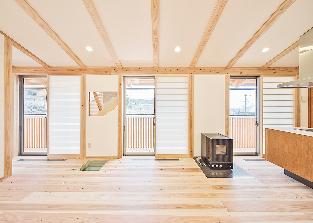 木材だけではなく、土佐漆喰、土佐和紙など伝統的な自然素材が豊富にあり、それらを取り入れた、夏涼しく、冬は暖かい住宅を作る技術が古くからありました。今回のエコハウスはそれらの材料をふんだんに使ったモダンな現代民家になっています。